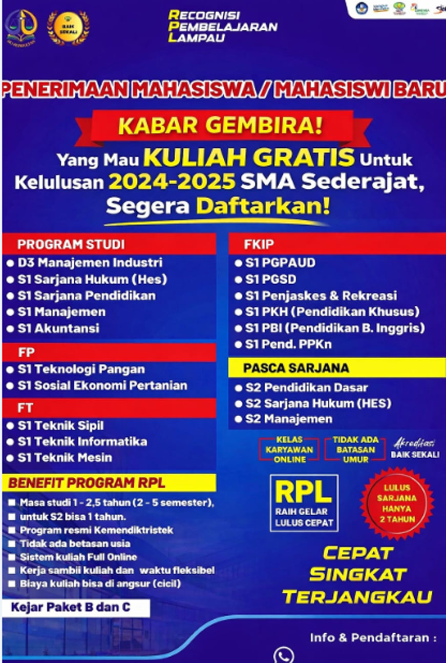 Kejar Paket B | Kejar Paket C | D3/S1 | S2 | Kuliah Gratis
